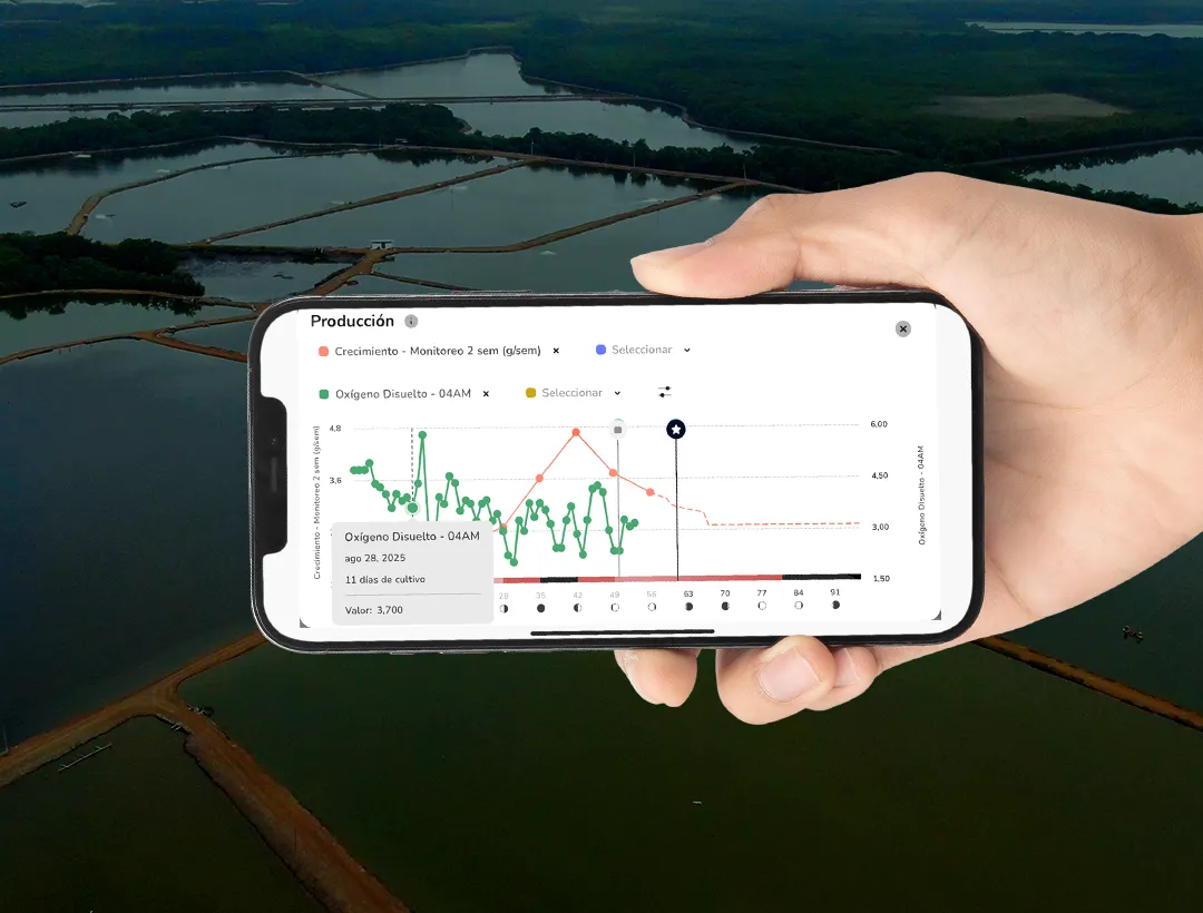 KAMPI se adapta a tu camaronera: no hay fincas iguales. Analiza tus datos, construye una línea base de tu producción y entrega insights personalizados de cada ciclo. Capacita a tu equipo 1:1 en campo, con certificaciones oficiales en Kampi Dynamic Precision Farming, validadas por nuestro equipo. Recibes asesoría y soporte continuo. Una vez que empiezas, no vas a querer mirar atrás.